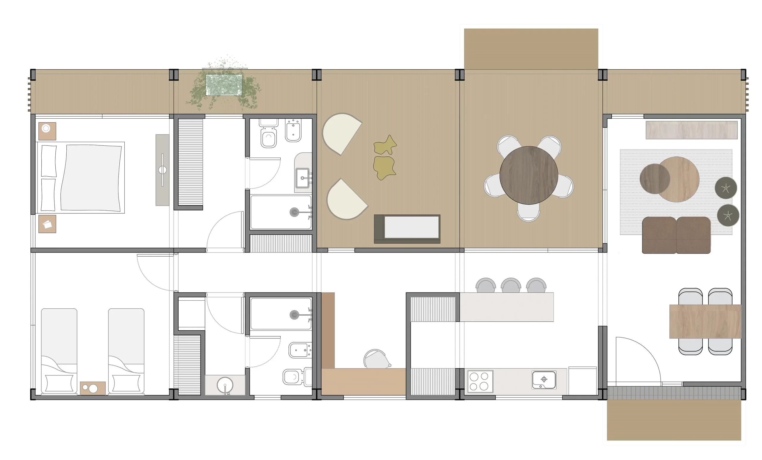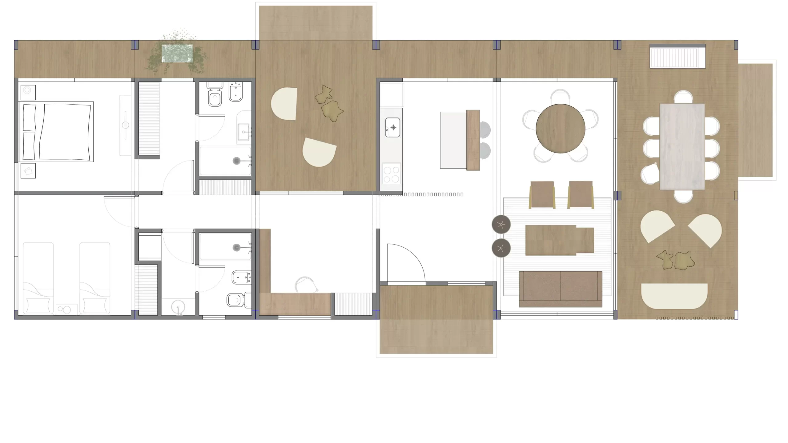 Al estar compuestas por módulos individuales, ofrecen la posibilidad de ser personalizadas de acuerdo a las necesidades y gustos de cada cliente, se pueden adaptar su distribución, diseño y acabados para satisfacer los requerimientos específicos de cada persona.