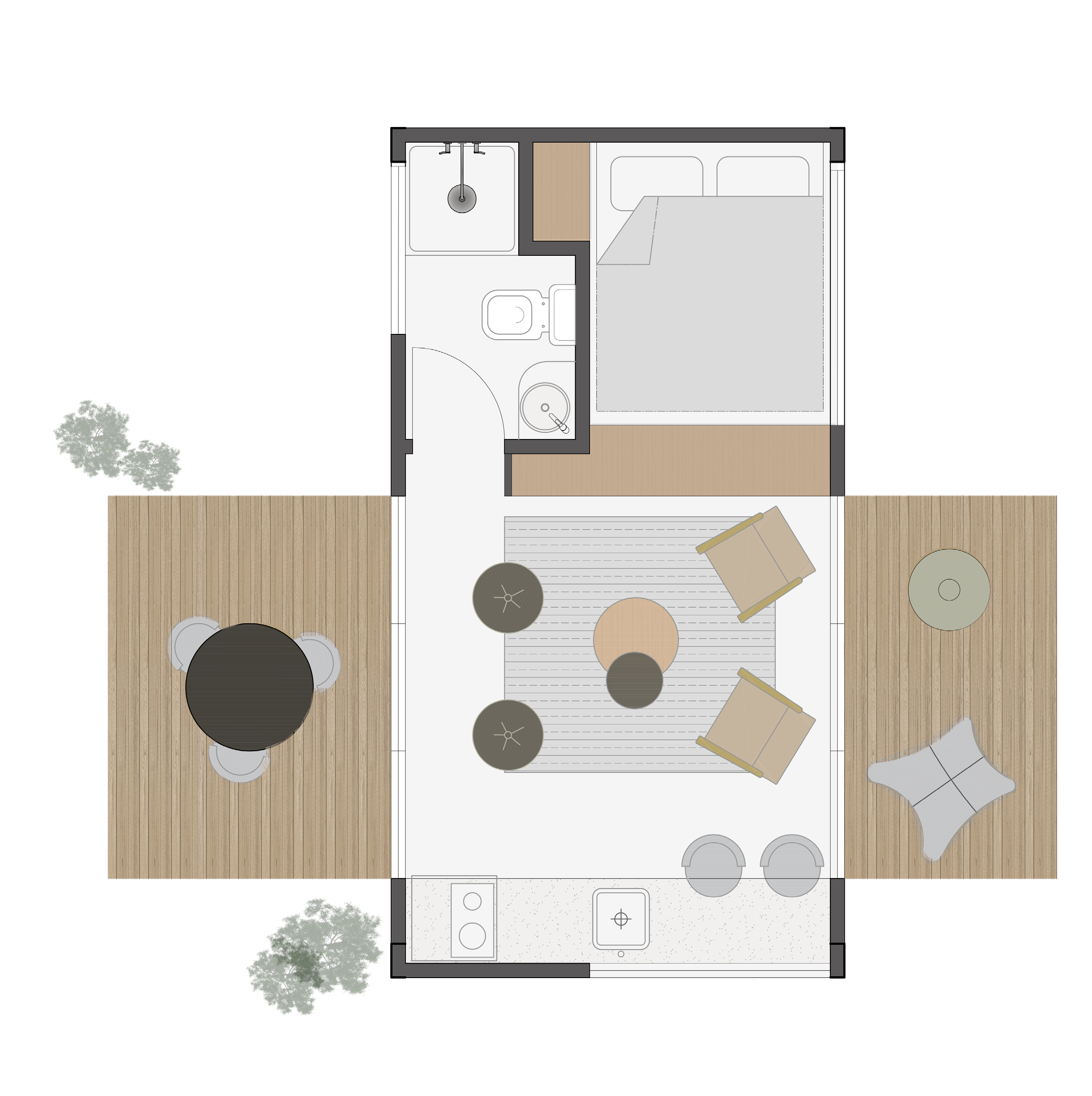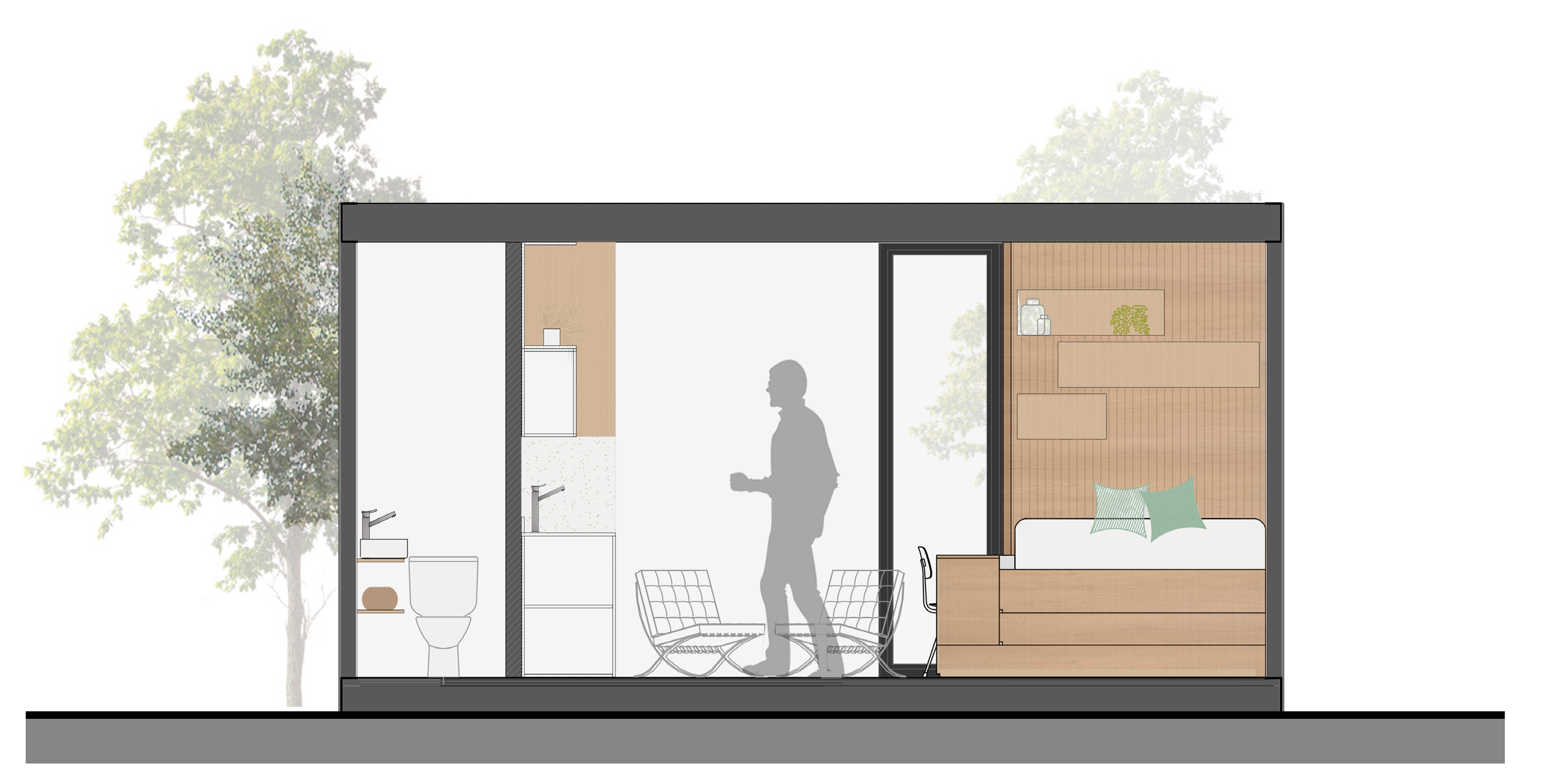 Las Tinyhaus poseen un sistema estructural metálico compuesto por perfiles de acero laminado, tabiques realizados con perfiles estructurales de acero galvanizado y las aislaciones térmicas, hidrófugas y acústicas adecuadas para alcanzar un producto de excelente calidad y confort.